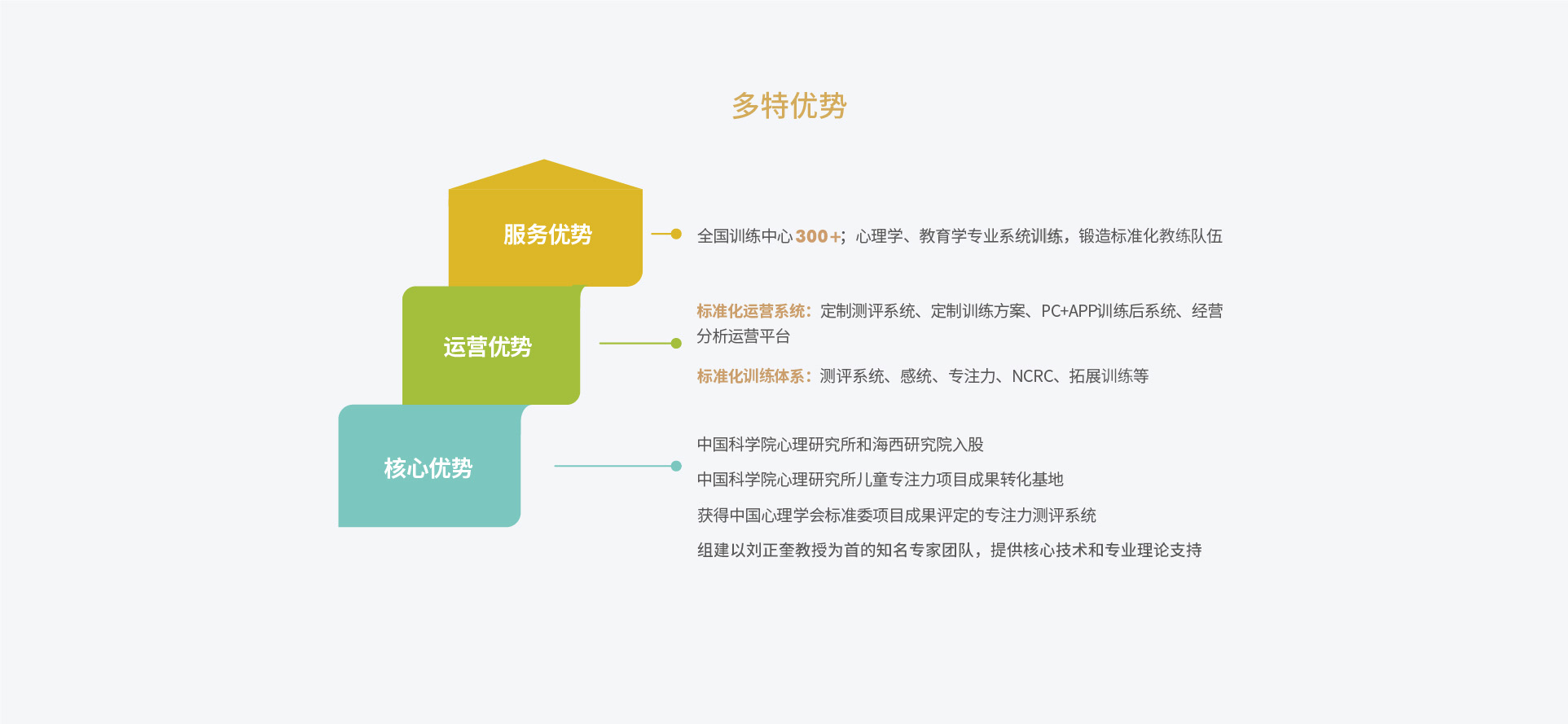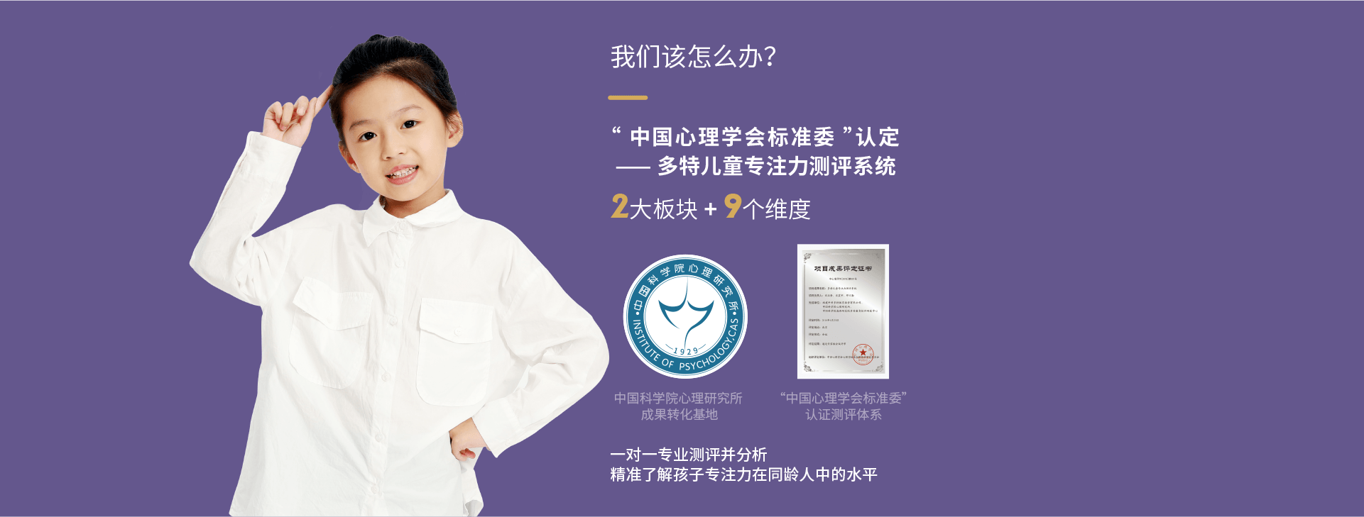 中科多特采用国际化的智适应训练方式,通过《多特儿童专注力测评系统》评估,一对一定制方案,专业训练并复测,训练过程全程智能调整。多特同中国科学院心理研究所共同研发的 《多特儿童专注力测评系统》,已获得 “中国心理学会标准委” 项目成果评定。同时,已申请用于相关领域的发明专利10项,软著51项,注册商标27项。