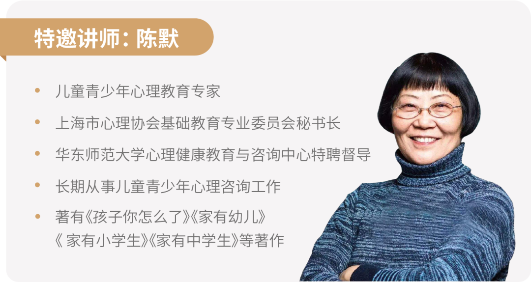 陈默老师96年起就从事青少年心理咨询工作,积累的家庭咨询案例超过10000+例。应邀在全国各地举办了数千场面向家长的讲座和针对教师的培训,在线课程覆盖全国数十万家庭,播放量突破千万次。