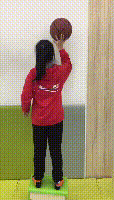 双脚站立与肩同宽,面向墙壁,连续向墙推球。